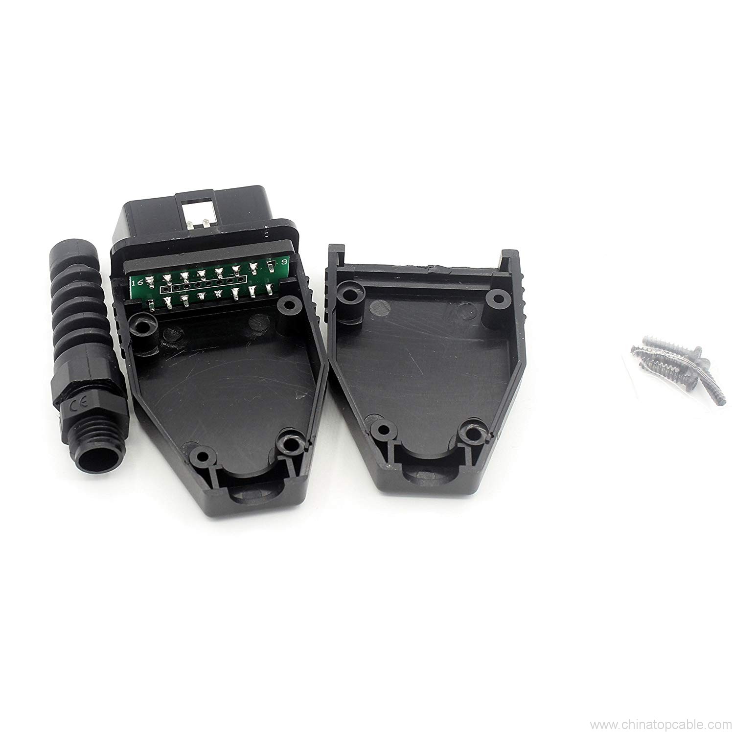 Conector macho OBD II 16 Adaptador de enchufe de cableado macho de pin para herramienta de diagnóstico OBD2 o cable (Negro)